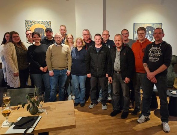 Das Foto zeigt die Gruppe von Sammlerinnen und Sammlern in einem Lokal zu Beginn der Sammlung.